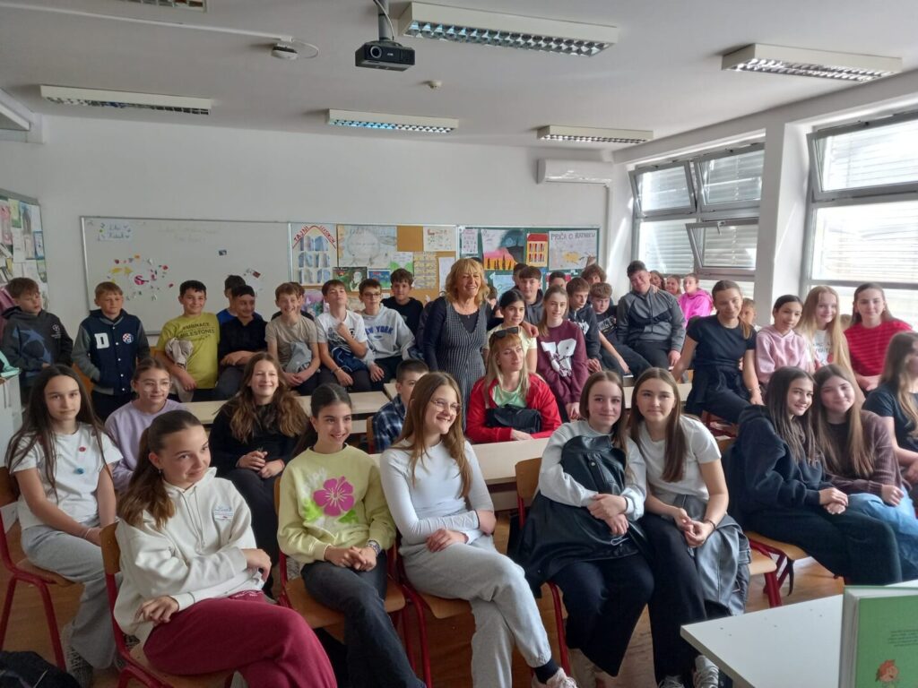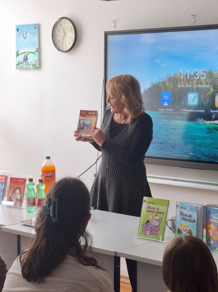 U našoj je školi u ponedjeljak 13. travnja 2026. održan književni susret s poznatom hrvatskom književnicom Sanjom Pilić. Učenici petih i šestih razreda imali su priliku iz prve ruke upoznati njezin život i književno stvaralaštvo. Autorica je na pristupačan i duhovit način govorila o svojem djetinjstvu, početcima pisanja te inspiraciji za nastanak svojih djela. Učenici su sa zanimanjem slušali autoricu te aktivno sudjelovali. Na kraju susreta uslijedio je dio predviđen za pitanja, a učenici su pokazali znatiželju i postavljali razna pitanja o pisanju, likovima i svakodnevnom životu autorice. Susret je protekao u ugodnoj i poticajnoj atmosferi te je dodatno motivirao učenike na čitanje i razvijanje ljubavi prema književnosti. Također, učenici su imali priliku kupiti knjige autorice, a Sanja Pilić rado im ih je potpisivala, što je dodatno razveselilo sve prisutne.