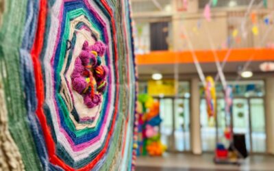 učenici i učitelji škole svojim tijelima i ružičastim balonima stvorili ružičastu vrpcu u znak
